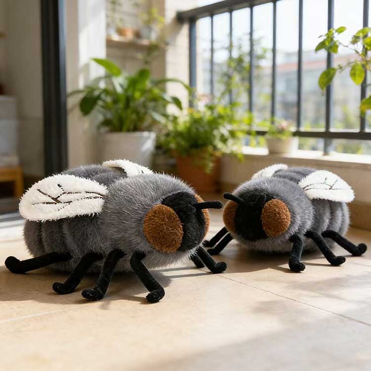 YSDメーカーのこのファッションフライぬいぐるみは、外観とサイズの点で細心の注意を払って設計されています。カラーは定番の2色で、ハエの自然な質感を再現し怖さのないリアルなグレーと、優しい色合いで愛らしい印象のブラウンの2色展開です。サイズは一律23cm、重さはわずか0.12kgで軽量で持ち運びも簡単です。お守りとしてバッグに掛けたり、装飾として机やベッドサイドテーブルに置いたりしても、場所をとりません。翼は繊細な刺繍で表現されており、胴体は均一かつ十分に詰められており、柔らかく、端はきれいにステッチされています。全体的に、それは絶妙で耐久性があります。小売りでも大量購入でも、顧客は金額に見合った優れた価値を得ていると感じるでしょう。