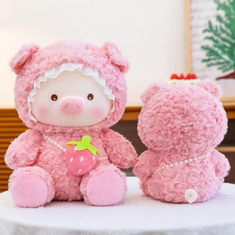 YSD Factory just put out our Lace Bonnet Strawberry Pig plush toy this year.it features soft, short-pile fur that is both soft and durable. Available in a variety of sizes, it is offered at competitive prices, with options available for customization and wholesale orders.